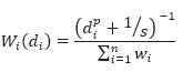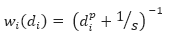 di is the distance of each of the n known data values gi within the search radius from the grid point x,y