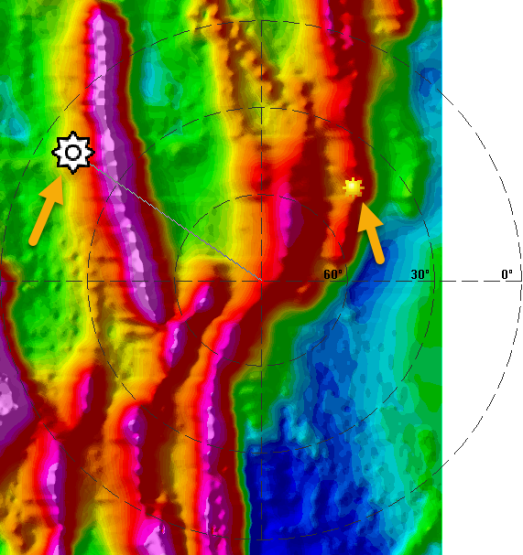 Initially, the sun angle inclination (height above the horizon) is set to 45°. You can change the inclination using either the arrow keys or by entering an exact value. The change takes effect immediately on the active grid. You could lock this parameter during interactive shading by clicking on the lock icon located to the right of this field. |