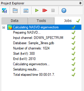 The process creates a new entry in the Jobs tab tree called Calculating NASVD Eigenvectors. The various steps of the process are listed under this node. Clicking the +/- icon expands or collapses the node.