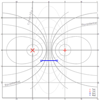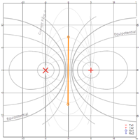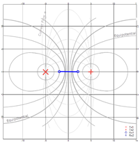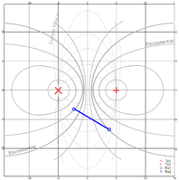 Given a good current flow in a homogeneous subsurface (thin grey lines) between 2 transmitters the equipotentials are distributed as indicated by the heavy grey lines.