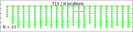 Grouped by TX1: This graph displays the N values vs TX1 locations. Use this graph to move the cursor directly to the desired TX1-N combination, and view the corresponding data in the Data graph.