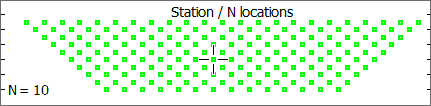 Grouping by Station: This graph displays the N values vs Station locations. Use this graph to move the cursor directly to the desired Station-N combination, and view the corresponding data in the Data graph.