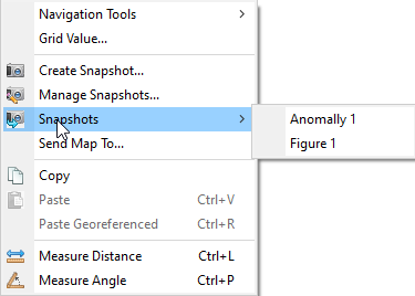 Snapshots can be quickly and easily viewed using the dynamic Snapshots menu item on the map window popup menus.