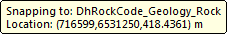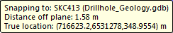 The cursor will snap to the X, Y, Z location of a vertex of an existing geostring feature that has already been digitized on the map. If you enable the snap cursor to rest for a moment, a tooltip will display showing the following information: