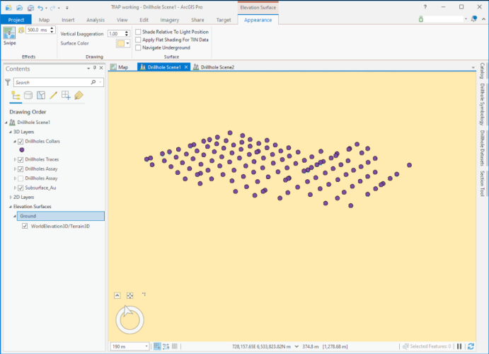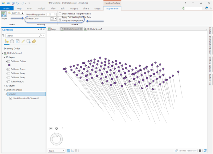 When adding datasets that are located beneath the earth's surface, it can sometimes be difficult to locate or to view them in a standard 3D scene. This tool changes some of the default scene parameters to make subsurface viewing a more natural experience.
