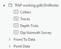 - Collars, Traces, Depth Ticks, and Dip Azimuth Survey data