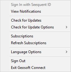 on your system tray and selecting Check for Updates.If there are no updates available, the Seequent Connector notification in your system tray informs you that the application(s) are up to date. The version number is displayed beside each of the installed applications.