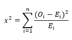 x2= Pearson's cumulative test statistic, which asymptotically approaches a x2 distribution.