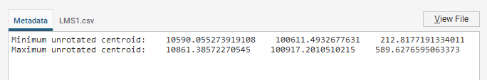 A Metadata tab contains additional information extracted or processed from the file content, including the minimum and maximum grid corners were the grid not rotated.