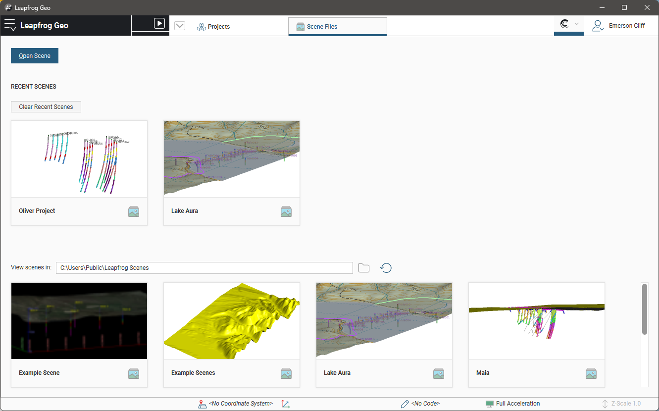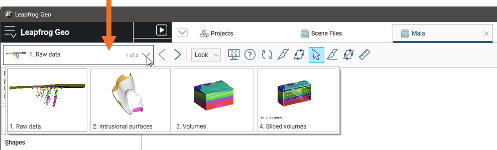 You can open Leapfrog Viewer scene files in Leapfrog Works by clicking on the Scene Files tab, then opening one of the scene files in the list.