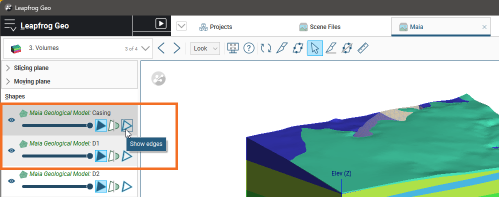 Use the controls in the Shapes panel to change how objects are displayed in the scene:
