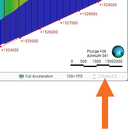 ) shows the scaling of the Z-axis relative to the X- and Y-axes. When the scene file was created, the z-scale may have been set to a value that accentuates height data. For example, this scene has been set to a Z-Scale of 6.0:
