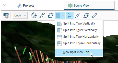 ) in the toolbar allows you to view up to two alternative views of the objects displayed in the scene: