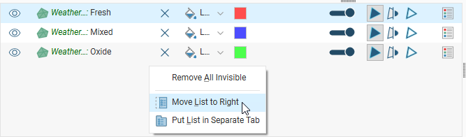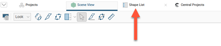 The Scene View tab is made up of the scene window, the shape list and the shape properties panel. The shape list and shape properties panel can be displayed on the right-hand side of the scene rather than below the scene. To do this, right-click in the shape list and select Move List to Right: