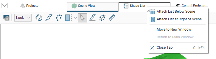 To dock the shape list to the Scene View tab, right-click in the Shape List tab and choose where you wish to dock the list: