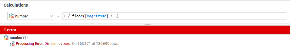 Other errors will be displayed when the type of result doesn't match the sort of calculation selected when it was created. A numeric calculation needs to produce numbers, a category calculation needs to produce text results, and filters need to produce true or false (boolean) results.