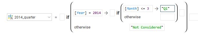 We need to extend this trivial example for organise the period into quarters, and to do this we can nest if(::) conditional statements. Replace the "2014" label with a new if(::) item: