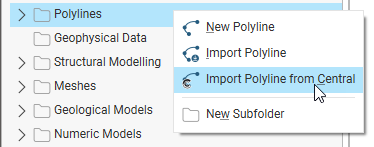 Geological models and refined geological models imported from Central are imported as static geological models. See Creating a Static Copy of a Geological Model for information on how to work with static geological models.