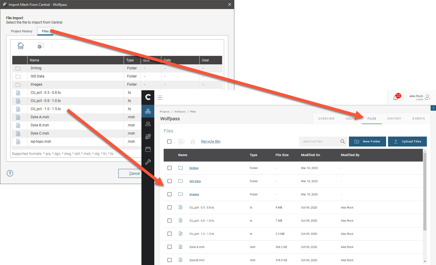 - Uploaded to the project’s files via the Central Portal. These appear in the Import From Central window in the Files tab.