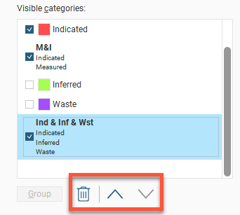 Select a category and click the up or down buttons to reorder them in the list. Delete a grouped category by selecting it and clicking the Delete button (