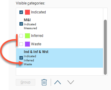 Note that some of the Visible categories can be unticked to hide them; these hidden categories can still be included in a grouped category:
