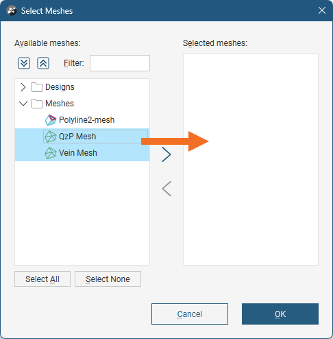 In the window that appears, meshes the table schema can be shared with are listed. Select those you wish to share your table schema to and move them into the Selected meshes list: