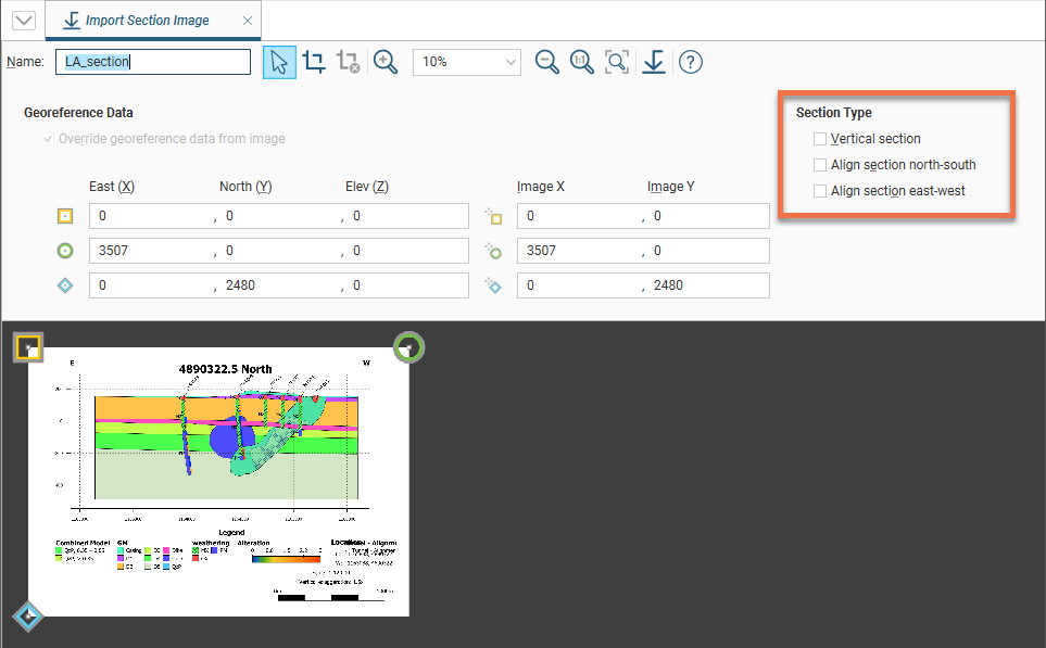 If your image is a north-south or east-west section, enable the corresponding Align section option.