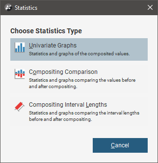 Univariate Graphs displays statistics on the composited values. The other two compositing options display statistics comparing data before and after compositing.