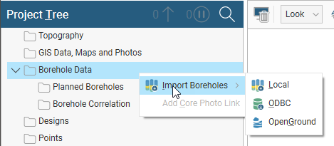 Drilling data forms the basis for creating models in Leapfrog Works. Import drilling data by right-clicking on the Borehole Data folder and selecting one of the import options: