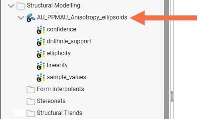 You can then create new structural trend from the ellipsoid by right-clicking on the Structural Trends folder and selecting New Ellipsoid Trend.
