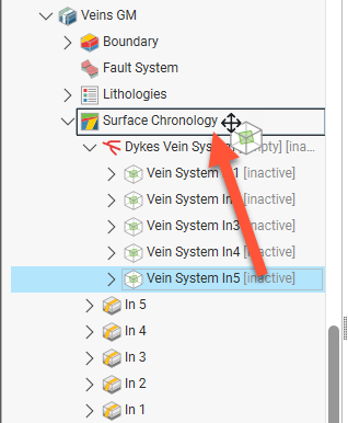 To move a vein out of a vein system, drag it onto the surface chronology: