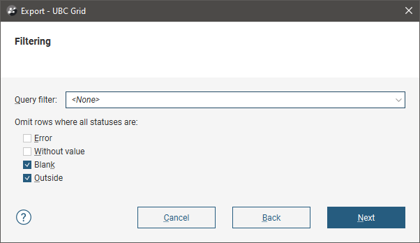 If the grid has no category evaluations, this is the first window that will appear when you select the Export as UBC Grid option.