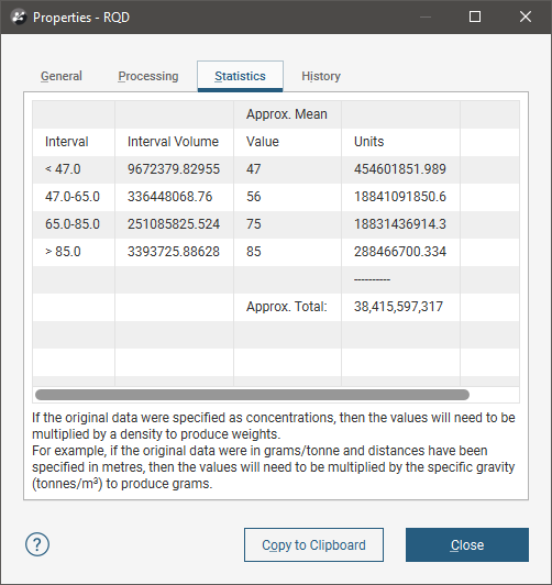 You can view the approximated mean for each output volume by right-clicking on the interpolant and selecting Properties. Click on the Statistics tab: