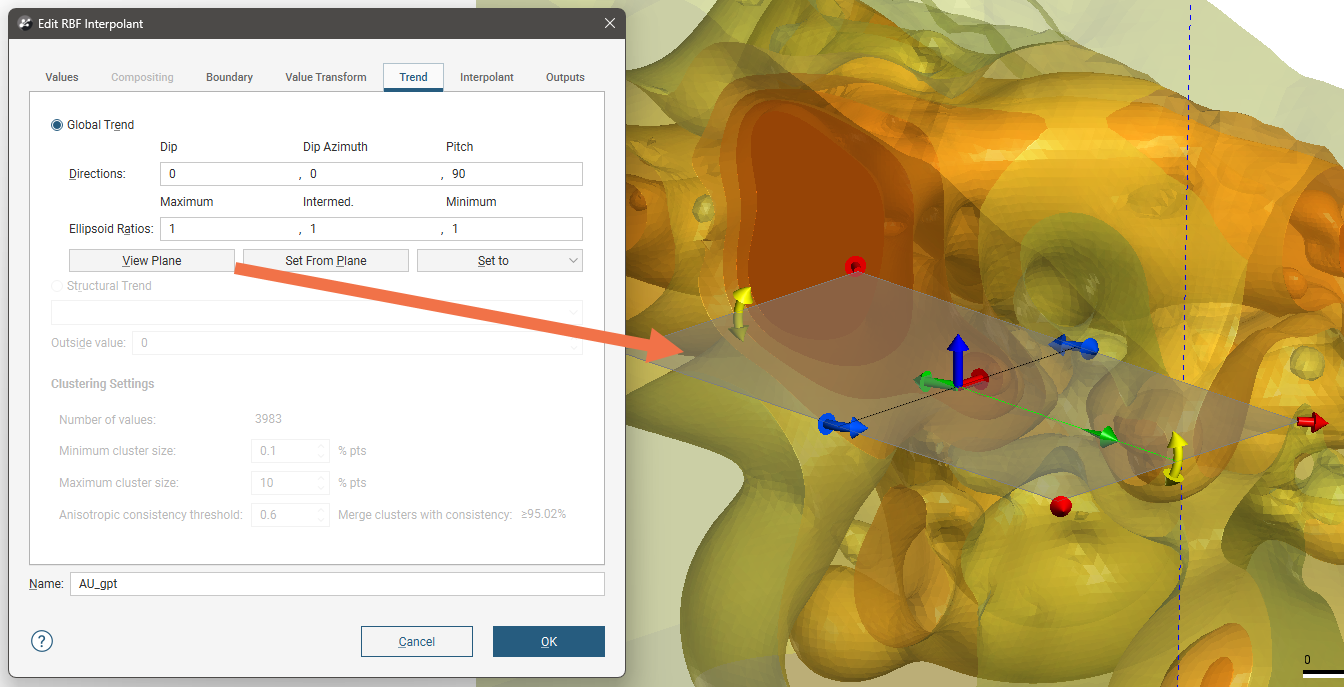 You can also set the trend for an RBF interpolant from a structural trend. First, you must create or import the required mesh and create a structural trend.