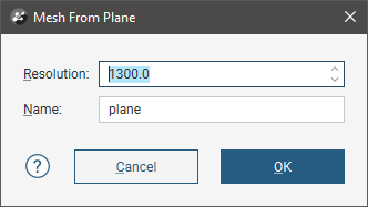 ). Use the controls in the scene to position the plane, then right-click on the Meshes folder and select Mesh From Moving Plane. The Mesh From Plane window will appear: