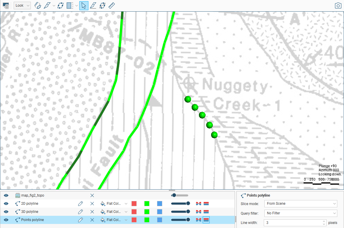 Polylines in the Polylines folder can be added to other objects as part of many different Leapfrog Works workflows.