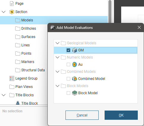 It is not necessary to evaluate objects in the project on the section before working in the section layout editor. When you add an object to the layout, Leapfrog Works will automatically evaluate it on the section.