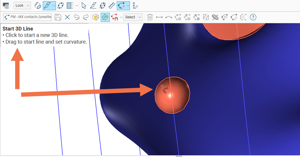 The Add tangents to new polylines setting determines whether or not new polylines are drawn with tangents. By default, Leapfrog Works draws polylines without tangents, and while drawing, you can switch between drawing with and drawing without tangents: