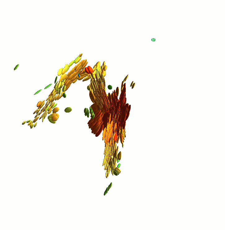 Note that where the trend approaches an isotopic trend, no ellipsoid is visualised.