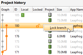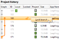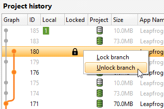 To lock a branch, right-click on it in the project history and select Lock branch: