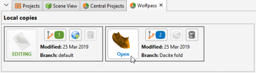 Click the Open button in the Local copies panel to open the project: