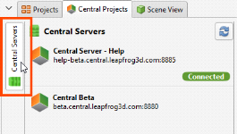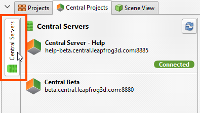 The Central Servers panel in the Central Projects tab shows all the Central servers you have access to. If a server you expect to see does not appear in the list, click the Refresh button (