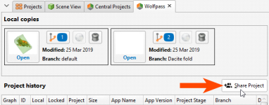 If you are a project’s owner, you can share it with other Central users by clicking the Share Project button in the project’s history tab: