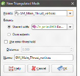 When defining the mesh’s extents, you can set the extents to be independent of other objects in the project (Own extents) or you can use the extents of another object (Shared with). When you select the Shared with option, the mesh will be updated when the extents object it shares is updated.