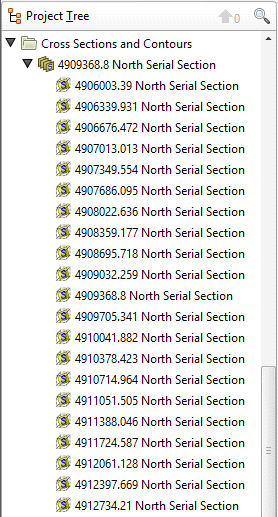 Click OK to create the section. In the project tree, the serial section includes the individual cross sections: