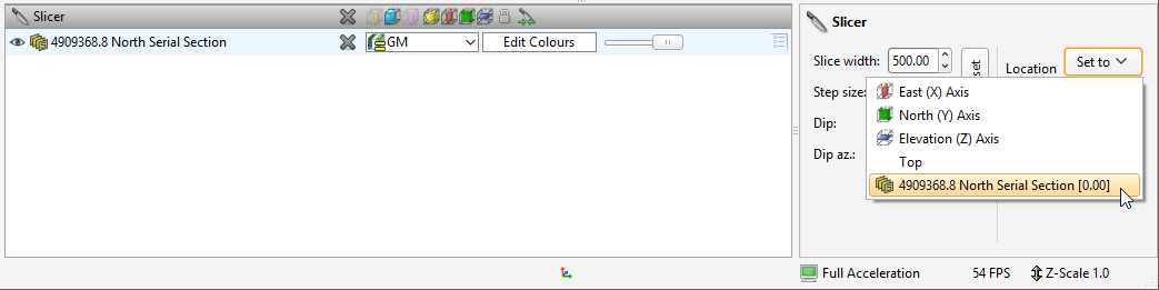 Next, set the Step size to the Spacing setting used to create the section. You can then use the < and > keys to view each individual cross section.